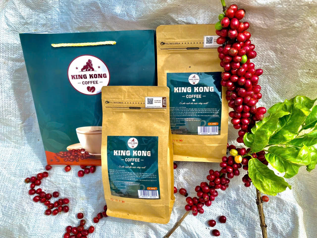 Cà phê Robusta King Kông là cà phê nguyên chất 100% rang mộc tự nhiên, không tẩm ướp bất kỳ hóa chất và phụ gia nào, đem lại cho người sử dụng sự an toàn và hương vị tự nhiên đúng nghĩa của cà phê. Cà phê King Kong được sản xuất theo quy trình sạch từ khâu chăm sóc, thu hái, bảo quản đến rang xay đã được người tiêu dùng trong và ngoài tỉnh công nhận. Sản phẩm của Cà phê King Kong đã có mặt tại các cửa hàng bán buôn, bán lẻ trên toàn tỉnh và ở nhiều tỉnh thành trong cả nước.